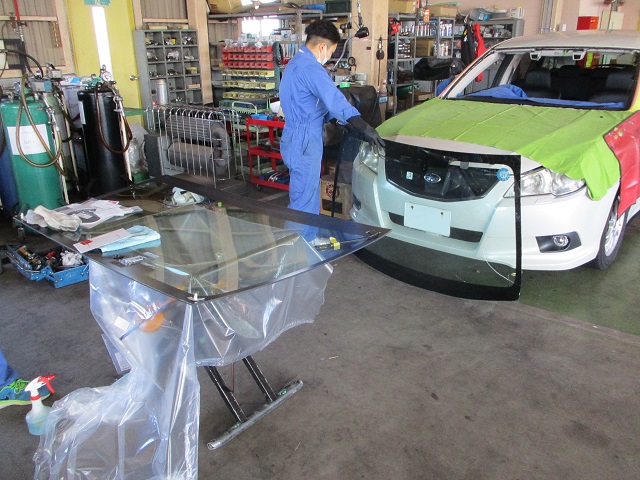 マスキングテープでお客様のお車が傷つかないように車両を保護し ガラスの交換を実施します。